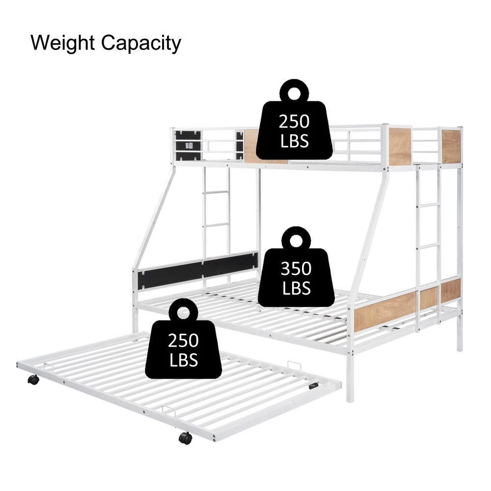 - Weight capacity: upper bed: 250 lbs. bottom bed: 350 lbs. trundle bed: 250 lbs. recommended mattress thickness: 6 in. 8 in.