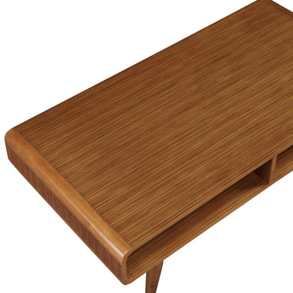 Whether your style is mid-century, Scandinavian, or something entirely your own, the Halmstad Coffee Table is sure to be a showstopper in your living room. The two open cubbies (great for storing magazines, remote controls, and books) rest atop four angled, tapering legs. This table is constructed from solid rubberwood, a variety of wood known for its beautiful grain and environmentally friendly production. It’s finished with Zebrano veneers in a rich walnut brown stain. Check out the other pieces in Boraam’s Zebra series. And for a complete living room look, consider pairing the Halmstad Coffee Table with the coordinating Alborg or Varberg Side Tables (sold separately).